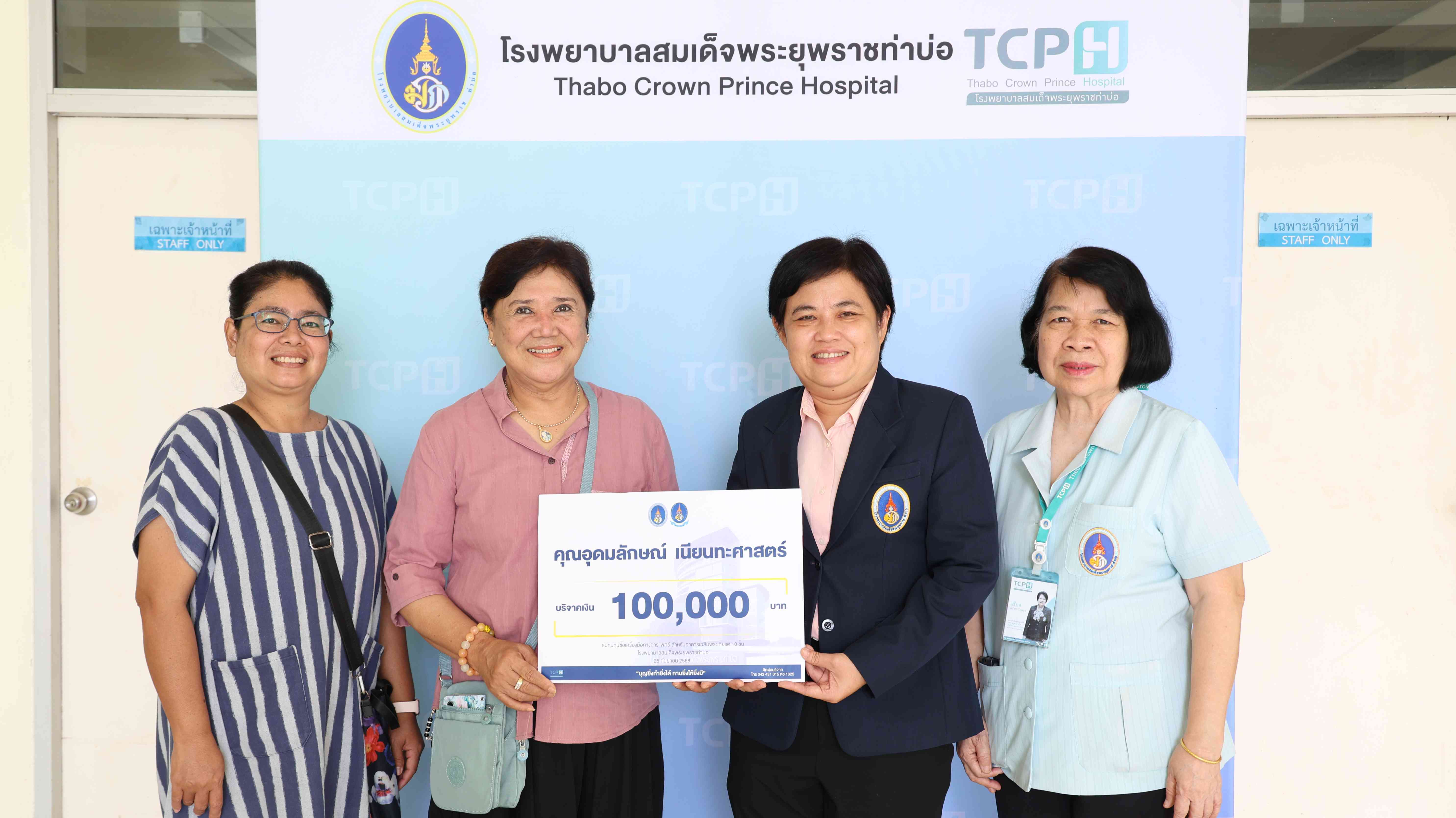 วันพฤหัสบดีที่ 25 กันยายน พ.ศ. 2568 แพทย์หญิงภรณี พรวัฒนา ผู้อำนวยการโรงพยาบาลสมเด็จพระยุพราชท่าบ่อ พร้อมด้วย นางเตียง ศรีหาปัญญา ผู้อำนวยการมูลนิธิโรงพยาบาลสมเด็จพระยุพราช สาขาท่าบ่อ รับมอบเงินบริจาค จำนวน 100,000 บาท จาก คุณอุดมลักษณ์ เนียนทะศาสตร์ เพื่อสมทบทุนซื้อเครื่องมือทางการแพทย์ สำหรับอาคารเฉลิมพระเกียรติ 10 ชั้น โรงพยาบาลสมเด็จพระยุพราชท่าบ่อ