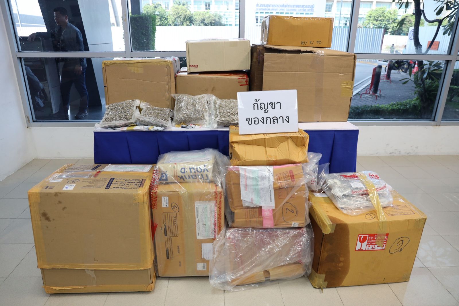 กรมการแพทย์แผนไทยและการแพทย์ทางเลือก ร่วมมือ บริษัท ไปรษณีย์ไทย จำกัด ตรวจยึดพัสดุต้องสงสัย คาดว่าจะเป็นกัญชาลักลอบส่งออก กว่า 1,500 ชิ้น ผ่านระบบขนส่งพัสดุ หลังพบพัสดุต้องสงสัยตกค้างจำนวนมาก ที่ศูนย์ไปรษณีย์ไทย ท่าอากาศยานสุวรรณภูมิ