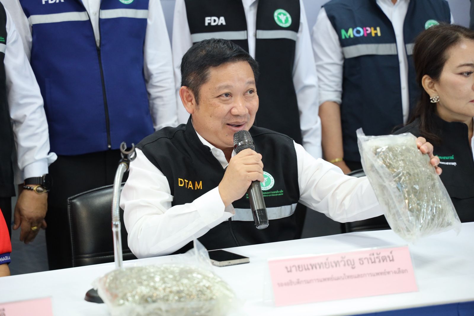 ด้าน นายแพทย์เทวัญ ธานีรัตน์ รองอธิบดีกรมการแพทย์แผนไทยและการแพทย์ทางเลือก ระบุว่า การลักลอบส่งออกช่อดอกกัญชาเป็นความผิดตามกฎหมาย แม้กัญชาในประเทศจะถูกปลดล็อกบางส่วน แต่การส่งออกยังถูกควบคุมเข้มงวด มีโทษจำคุกไม่เกิน 1 ปี หรือปรับไม่เกิน 20,000 บาท หรือทั้งจำ ทั้งปรับ ซึ่งที่ผ่านมา ตั้งแต่เดือนมีนาคม – กรกฎาคม 2568 กรมฯ ได้ร่วมกับตำรวจและฝ่ายปกครองบังคับใช้กฎหมายอย่างต่อเนื่อง พบผู้กระทำผิดจำนวน 33 ราย ยึดช่อดอกกัญชากว่า 1,000 กิโลกรัม ทั้งที่สนามบินดอนเมือง และสนามบินสุวรรณภูมิ ดังนั้นจะเดินหน้าบังคับใช้กฎหมายต่อเนื่อง พร้อมสร้างความตระหนักให้ประชาชนรับทราบถึงข้อห้ามในการส่งออกกัญชาโดยไม่ได้รับอนุญาต ต่อไป