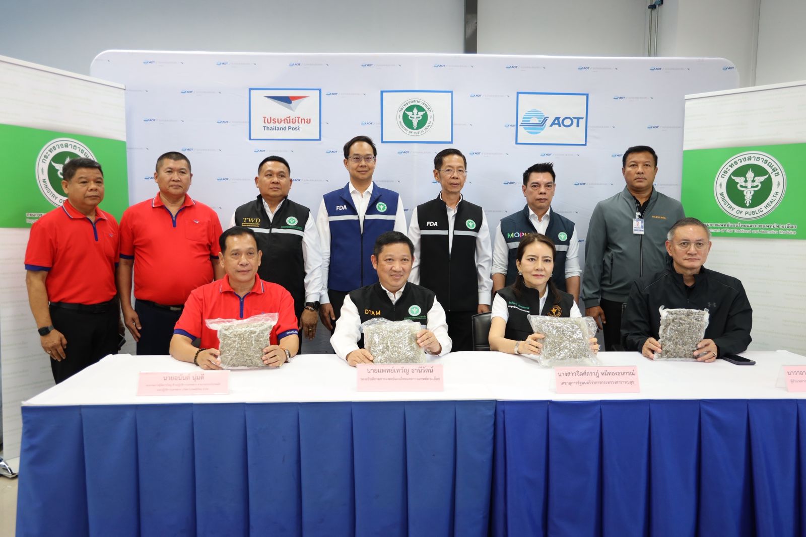 สธ. ผนึกกำลัง ไปรษณีย์ไทย เดินหน้าปราบปราม ลักลอบส่งออกกัญชา ยึดพัสดุต้องสงสัย กว่า 1,500 ชิ้น ที่สนามบินสุวรรณภูมิ