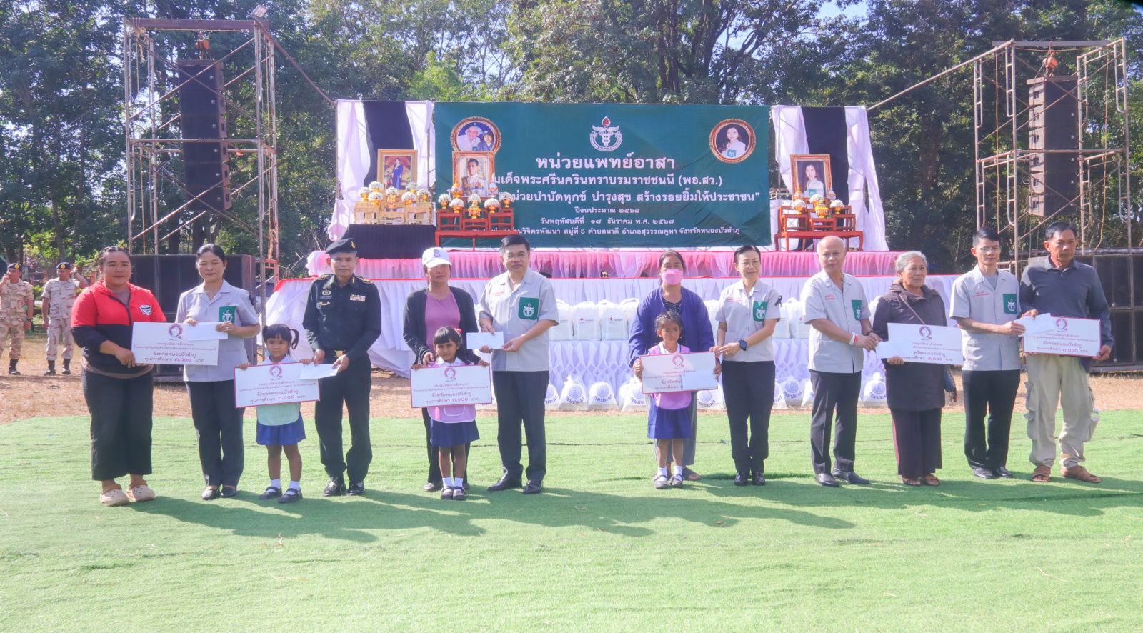 วันพฤหัสบดีที่ 18 ธันวาคม พ.ศ. 2568 เวลา 09.30 น. นายสุรศักดิ์ อักษรกุล ผู้ว่าราชการจังหวัดหนองบัวลำภู เป็นประธานการออกหน่วยแพทย์อาสา สมเด็จพระศรีนครินทราบรมราชชนนี (พอ.สว.) โครงการ "หน่วยบำบัดทุกข์ บำรุงสุข สร้างรอยยิ้มให้ประชาชน" ปีงบประมาณ พ.ศ.2568 ประจำเดือนธันวาคม โดยมีวัตถุประสงค์เพื่อออกหน่วยให้บริการ ตามภารกิจของมูลนิธิแพทย์อาสาสมเด็จพระศรีนครินทราบรมราชชนนี/ หน่วยแพทย์เคลื่อนที่ (พอ.สว.), ภารกิจของหน่วยงานองค์กรภาครัฐ รัฐวิสาหกิจ และภาคเอกชนในการให้บริการแก่ประชาชนในพื้นที่ห่างไกล ในโอกาสนี้ นพ.ธราพงษ์ กัปโก นายแพทย์สาธารณสุขจังหวัดหนองบัวลำภู พร้อมด้วย พญ.พิศมัย วิชน นายแพทย์ชำนาญการ รักษาการในตำแหน่งผู้อำนวยการโรงพยาบาลสุวรรณคูหา, นายคเณศวร โคตรทา รักษาการในตำแหน่งสาธารณสุขอำเภอสุวรรณคูหา, บุคลากรเจ้าหน้าที่ สำนักงานสาธารณสุขจังหวัดหนองบัวลำภู, โรงพยาบาลหนองบัวลำภู, สำนักงานสาธารณสุขอำเภอสุวรรณคูหา, โรงพยาบาลสุวรรณคูหา ร่วมจัดกิจกรรมด้านทันตสาธารณสุข / ตรวจสุขภาพและเข้าร่วมงาน ร่วมกับส่วนราชการทุกภาคส่วนในจังหวัดหนองบัวลำภูและประชาชนในพื้นที่ ณ โรงเรียนบ้านวิจิตรพัฒนา หมู่ที่ 5 ตำบลนาดี อำเภอสุวรรณคูหา จังหวัดหนองบัวลำภู