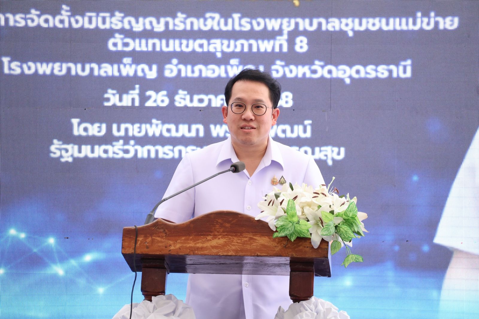 วันศุกร์ที่ 26 ธันวาคม พ.ศ. 2568 นายพัฒนา พร้อมพัฒน์ รัฐมนนตรีว่าการกระกรวงสาธารณสุข เป็นประธานตรวจเยี่ยมการดำเนินงานตามนโยบายกระกรวงสาธารณสุข และการจัดตั้ง "มินิธัญญารักษ์" ในโรงพยาบาลชุมชนแม่ข่าย เขตสุขภาพที่ 8 เพื่อขยายบริการบำบัดฟื้นฟูผู้ติดยาเสพติดให้เข้าถึงง่าย ใกล้บ้าน ในโรงพยาบาลชุมชน ลดความแออัดในโรงพยาบาลเฉพาะทาง และช่วยเหลือผู้ป่วยให้กลับมาใช้ชีวิตในสังคมได้ปกติสุข โดยมี นพ.เอกชัย เพียรศรีวัชรา รองปลัดกระกรวงสาธารณสุข, นายณฐพล วิถี รองผู้ว่าราชการจังหวัดอุดรธานี, นพ.สามารถ ถิระศักดิ์ ผู้ตรวจราชการกระทรวงสารารณสุข เขตสุขภาพที่ 8 และ พญ.บุญศิริ จันศิริมงคล สาธารณสุขนิเทศก์ เขตสุขภาพที่ 8 พร้อมด้วย ผู้บริหารและบุคลากรในเขตสุขภาพที่ 8 ในโอกาสนี้ นพ.ธราพงษ์ กัปโก นายแพทย์สาธารณสุขจังหวัดหนองบัวลำภู มอบหมายให้ พญ.ธิตาพร ดาวเศรษฐ์ รองนายแพทย์สาธารณสุขจังหวัดหนองบัวลำภู (ด้านเวชกรรมป้องกัน 1) ร่วมให้การต้อนรับ เป็นผู้แทนรับมอบประกาศนียบัตร การจัดตั้งมินิธัญญารักษ์ ในโรงพยาบาลนากลาง จังหวัดหนองบัวลำภูและเข้าร่วมการตรวจเยี่ยมในครั้งนี้ ณ โรงพยาบาลเพ็ญ อำเภอเพ็ญ จังหวัดอุดรธานี