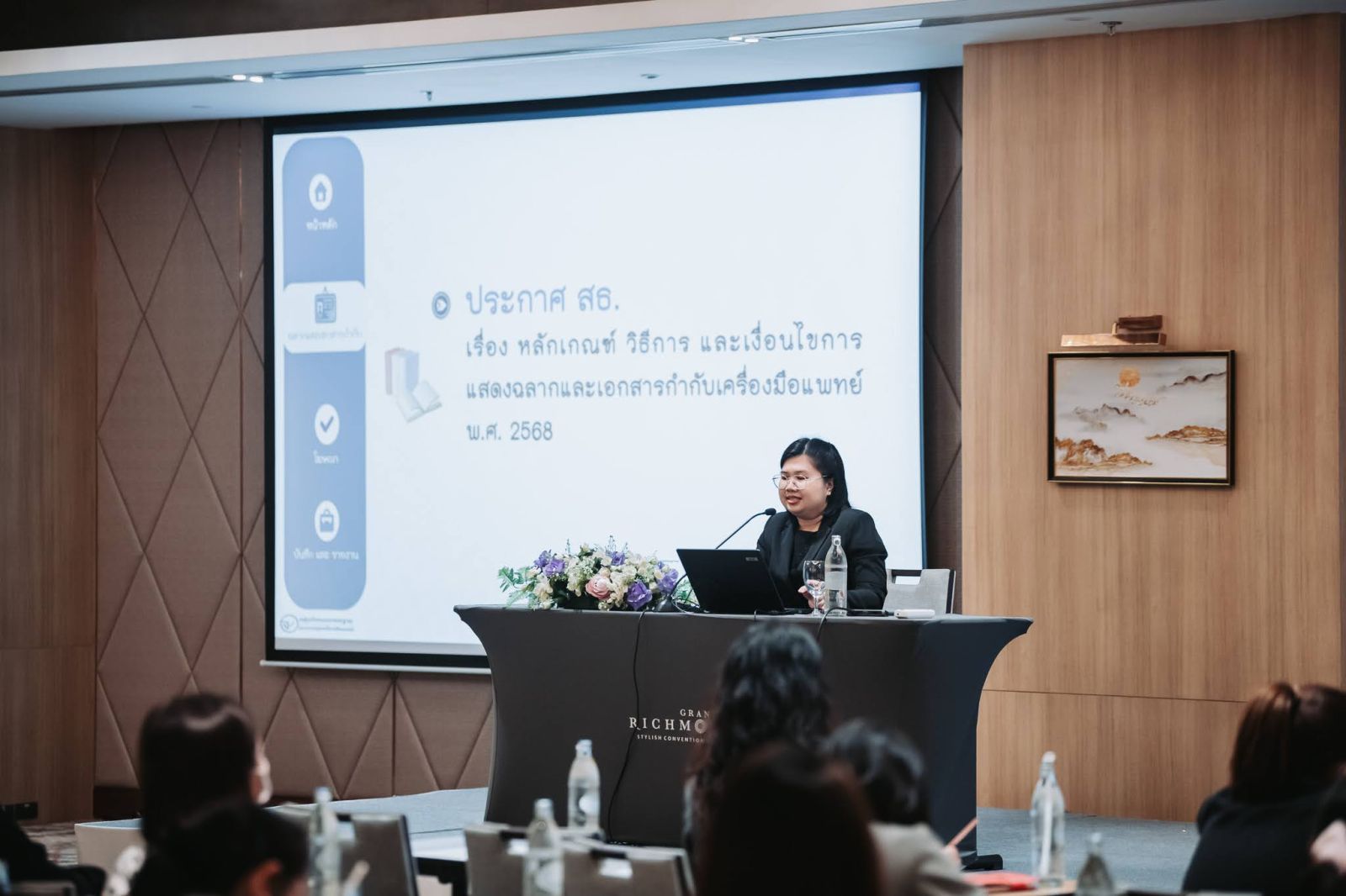 8 มกราคม 2569 ณ โรงแรมแกรนด์ ริชมอนด์ นายแพทย์รุ่งฤทัย มวลประสิทธิ์พร รองเลขาธิการคณะกรรมการอาหารและยา เปิดเผยว่า สำนักงานคณะกรรมการอาหารและยา (อย.) มีนโยบายส่งเสริมและสนับสนุนผู้ประกอบการให้สามารถขอขึ้นทะเบียนผลิตภัณฑ์ได้อย่างมีประสิทธิภาพ โดยเน้นการจัดเตรียมเอกสารที่ครบถ้วนและถูกต้อง ซึ่งที่ผ่านมา พบว่าผู้ประกอบการบางส่วนยังขาดความรู้ความเข้าใจเกี่ยวกับเอกสารที่ต้องใช้ในการยื่นคำขอ อย. จึงจัดการอบรมขึ้นเพื่อเสริมสร้างความรู้และความพร้อมในการจัดเตรียมเอกสารสำหรับขึ้นทะเบียนเครื่องมือแพทย์ประเภทวินิจฉัยภายนอกร่างกาย (In vitro diagnostic: IVD) รวมถึงแนะนำแนวทางการยื่นคำขอให้เป็นไปตามที่กฎหมายและกฎกระทรวงกำหนด