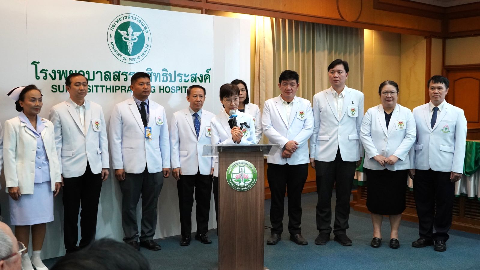 โดยมี แพทย์หญิงกันตินันท์ มหาสุวีระชัย ผู้อำนวยการโรงพยาบาลสรรพสิทธิประสงค์ พร้อมคณะผู้บริหารและเจ้าหน้าที่โรงพยาบาลฯ ร่วมให้การต้อนรับ ณ ชั้น 6 อาคาร 50 พรรษา มหาวชิราลงกรณ