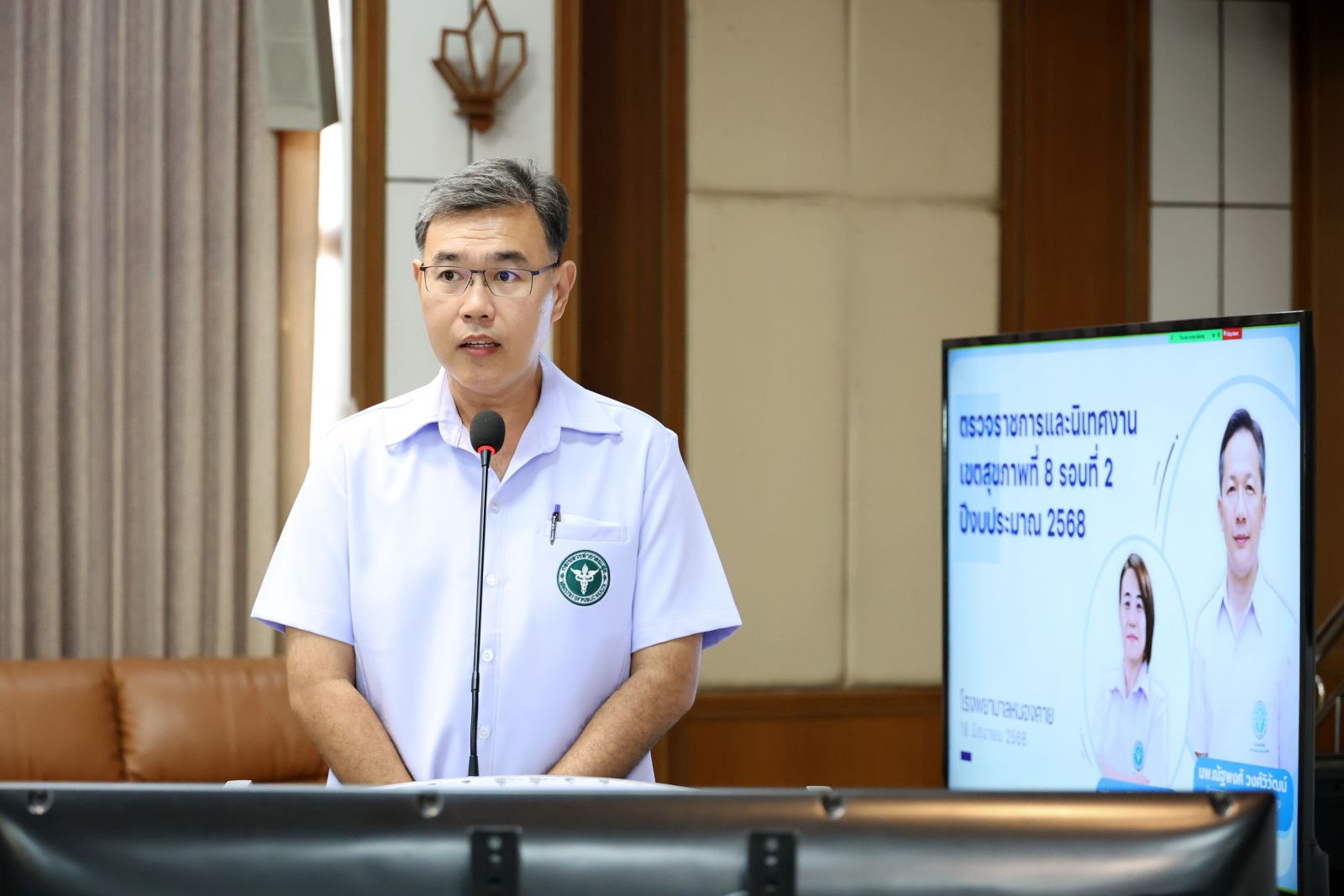 เช้าวันนี้ (18 มิ.ย.68) “แพทย์หญิงฤดีมน สกุลคู” ผู้อำนวยการโรงพยาบาลหนองคาย คณะกรรมการบริหาร คณะเจ้าหน้าที่โรงพยาบาลหนองคาย รับการตรวจราชการและนิเทศงาน กรณีปกติ รอบที่ 2/2568 โดยมี “นายแพทย์ณัฐพงศ์ วงศ์วิวัฒน์” ผู้ตรวจราชการกระทรวงสาธารณสุข เขตสุขภาพที่ 8 “แพทย์หญิงบุญศิริ จันศิริมงคล” สาธารณสุขนิเทศก์ เขตสุขภาพที่ 8 เป็นประธาน สำนักงานสาธารณสุขจังหวัดหนองคาย นำเสนอภาพรวมจังหวัดตามประเด็นการตรวจราชการ โดย “นายแพทย์แหลมทอง แก้วตระกูลพงษ์” รองนายแพทย์สาธารณสุขจังหวัดหนองคาย “นายแพทย์ฉัตรชัย บุญประชารัตน์” รองผู้อำนวยการโรงพยาบาลหนองคายกลุ่มภารกิจด้านการพัฒนาระบบบริการและสนับสนุนบริการสุขภาพ นำเสนอผลการดำเนินงานของโรงพยาบาลหนองคาย การตรวจราชการและนิเทศงาน ครั้งนี้ มี “นายแพทย์สุรพงษ์ ผดุงเวียง” นายแพทย์สาธารณสุขจังหวัดหนองคาย และผู้รับผิดชอบประเด็นการตรวจราชการ ร่วมให้การต้อนรับและรับฟังผลการดำเนินงานตามประเด็นการตรวจราชการ และประชุมผ่านระบบออนไลน์ ณ ห้องประชุมชื่น ระวิวรรณ ชั้น 4 อาคารเฉลิมพระเกียรติ โรงพยาบาลหนองคาย