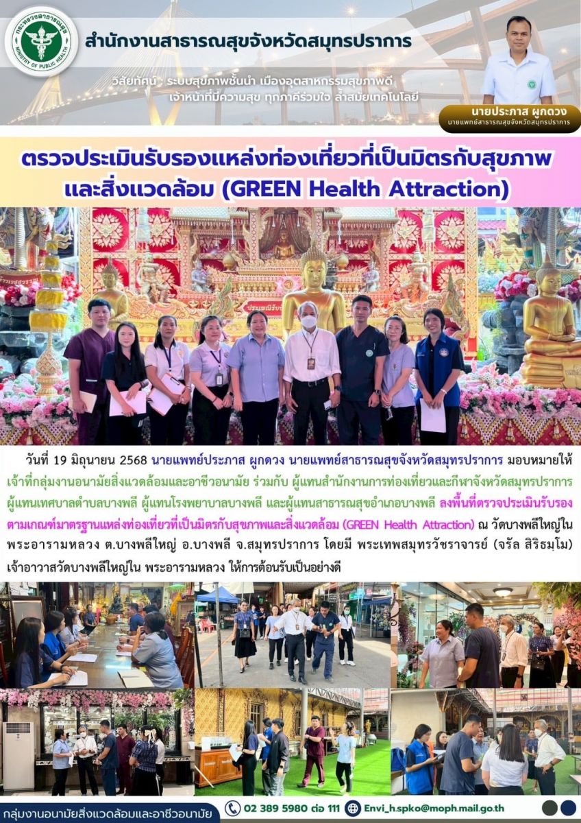 สสจ. สมุทรปราการ ตรวจประเมินรับรองแหล่งท่องเที่ยวที่เป็นมิตรกับสุขภาพและสิ่งแวดล้อม
