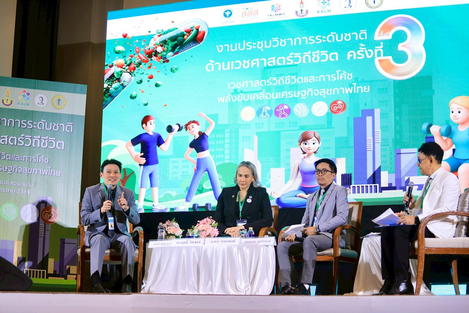 วันนี้ (14 มกราคม 2569) นายแพทย์โสภณ เอี่ยมสิริถาวร รองปลัดกระทรวงสาธารณสุข เป็นประธานเปิดการประชุมวิชาการระดับชาติด้านเวชศาสตร์วิถีชีวิต ครั้งที่ 3 “เวชศาสตร์วิถีชีวิตและการโค้ช : จังหวะชีวิตเพื่ออายุที่ยืนยาวอย่างมีคุณภาพชีวิตที่ดี”พ.ศ.2568 โดยมี ดร.นายแพทย์พรเทพ ศิริวนารังสรรค์ นายกสมาคมเวชศาสตร์ป้องกันแห่งประเทศไทย และประธานมูลนิธิศาสตราจารย์นายแพทย์สมบูรณ์วัชโรทัย นายแพทย์สันต์ ใจยอดศิลป์ ผู้อำนวยการศูนย์สุขภาพ Wellness We care ดร.นายแพทย์ปองพล วรปาณิ รองอธิบดีกรมอนามัย นายแพทย์ปกรณ์ ตุงคะเสรีรักษ์ รองอธิบดีกรมอนามัย รองศาสตราจารย์ ดร.นายแพทย์ภูดิท เตชาติวัฒน์ ผู้อำนวยการศูนย์จัดการความรู้ด้านเวชศาสตร์วิถีชีวิต (KALM Center) ผู้อำนวยการสถาบันสุขภาวะพิสิฐ และนายกสมาคมโค้ชเวชศาสตร์วิถีชีวิตและเวลเนสไทย (TALMWC) ดร.นายแพทย์ไพโรจน์ เสาน่วม รองผู้จัดการสำนักงานกองทุนสนับสนุนการสร้างเสริมสุขภาพ (สสส.) และผู้บริหารกระทรวงสาธารณสุข ร่วมงาน ณ โรงแรมมิราเคิล แกรนด์ คอนเวนชั่น กรุงเทพมหานคร