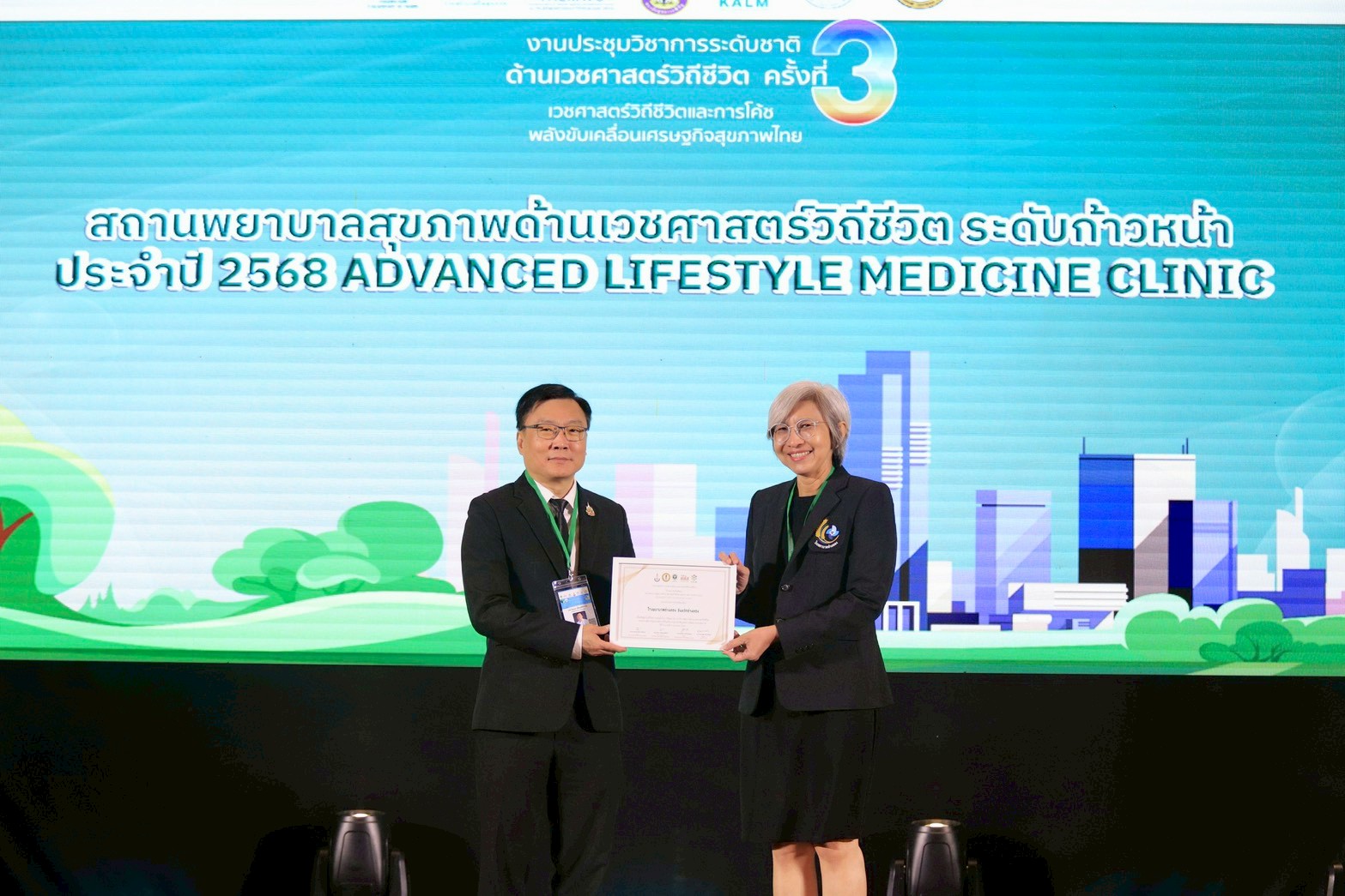 รวมทั้ง การมอบรางวัลดีเด่นระดับชาติ 5 ประเภท ได้แก่ นักบริหารดีเด่นด้านเวชศาสตร์วิถีชีวิต ทีมบริการสุขภาพดีเด่น นักวิชาการดีเด่น องค์กรปกครองส่วนท้องถิ่นดีเด่น และภาคประชาชนดีเด่น เพื่อยกย่องผู้ที่มีผลงานสร้างผลกระทบเชิงบวกต่อระบบสุขภาพและชุมชน และมอบโล่รางวัลสถานบริการ Lifestyle Medicine ระดับก้าวหน้า (Advance) แก่โรงพยาบาลนครปฐม และโรงพยาบาลม่วงสามสิบ จังหวัดอุบลราชธานี