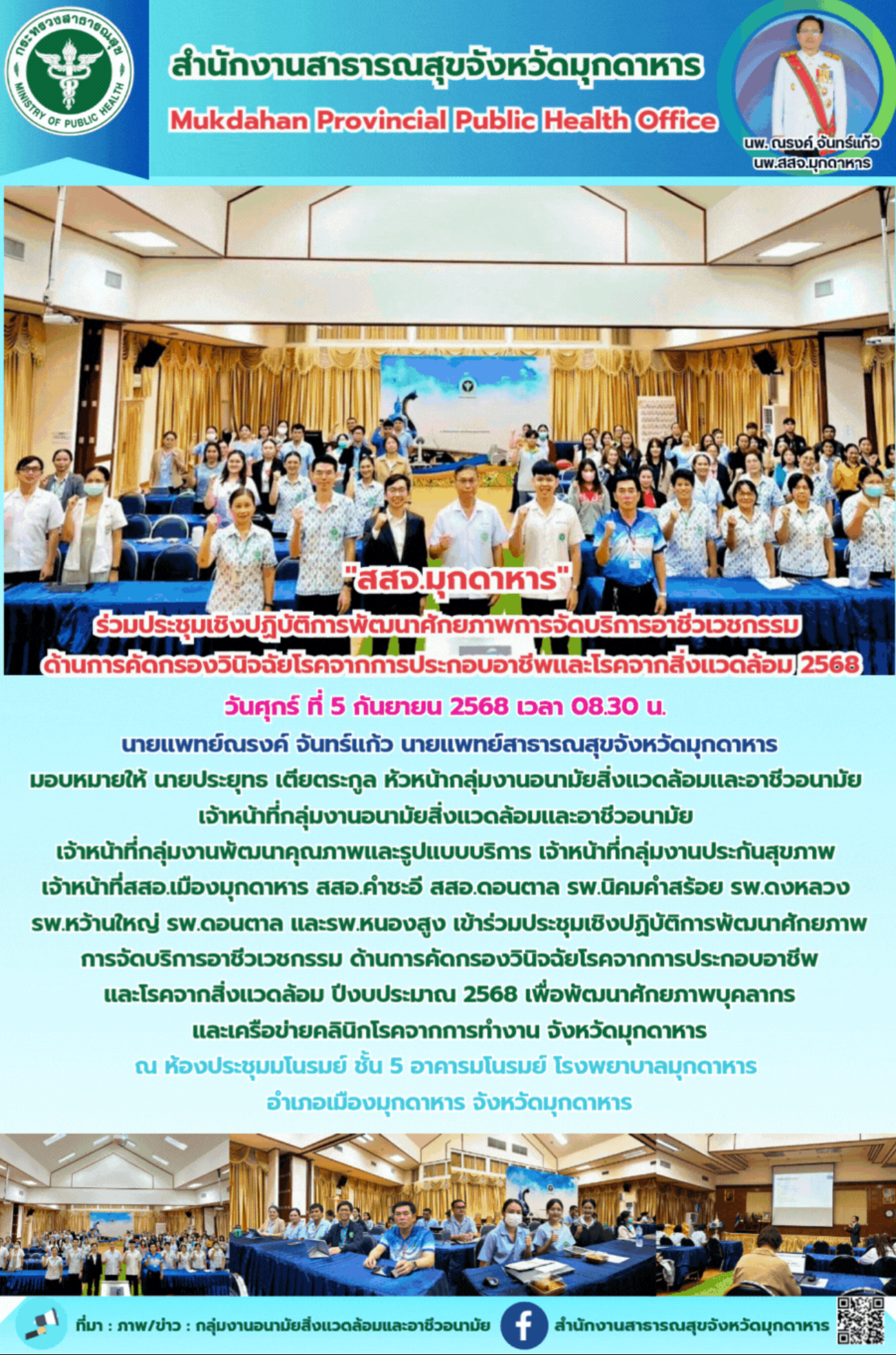 สสจ.มุกดาหาร เข้าร่วมประชุมเชิงปฏิบัติการการส่งเสริมเครือข่ายการพัฒนาผลิตภัณฑ์สุ...